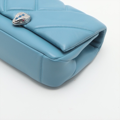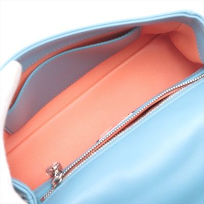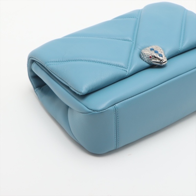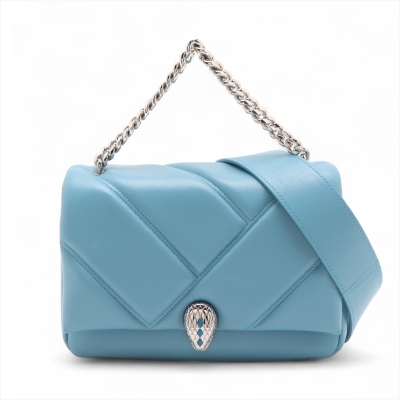 Bvlgari Serpenti Cabochon mini bag in blue calfskin with a maxi graphic motif. Featuring silver-tone hardware, frontal flap with the snakehead design detailed magnetic closure. The flap opens to a orange leather lining interior with flat & zipper pockets. Approx dimensions: 22cm(L) x 14cm(H) x 7cm(D), 9cm handle drop, 55cm strap drop, adjustable. Accompanied by a Bvlgari raincoat, dustbag. With Legitapp Certificate of Authenticity. (Pre-owned)