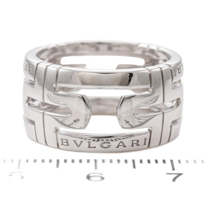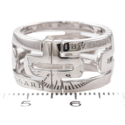 Bvlgari Parentesi ring. 18ct white gold. Stamped size 58, P 3/4 - ring resizing is not recommended. Width: 11.4mm. Made in Italy. Weight: 11.8g. (Pre-owned)