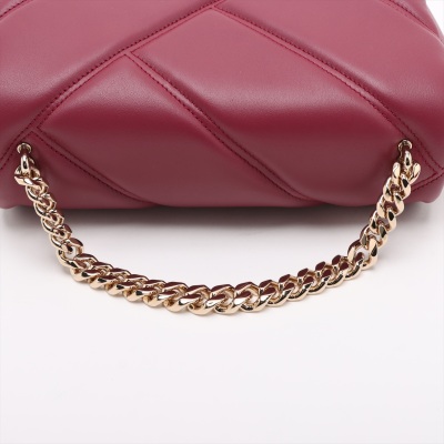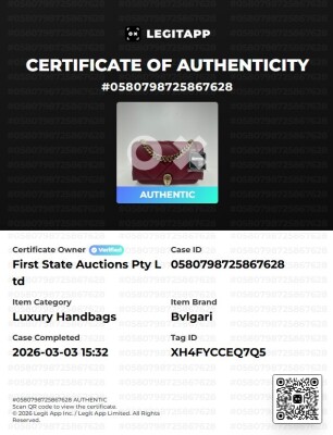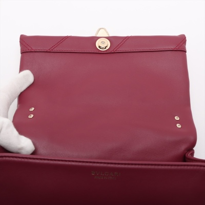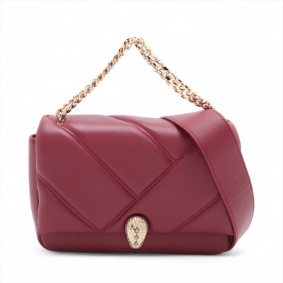 Bvlgari Serpenti Cabochon bag in bordeaux calfskin with a maxi graphic motif. Featuring light gold-toned hardware, maxi chain handle, detachable leather strap, and a frontal flap magnetic closure with the Serpenti head design. This opens to a pink leather lining interior with flat and zippered pockets. Approx dimensions: 22cm(W) x 15cm(H) x 7cm(D), with a 8cm handle drop and 48cm adjustable strap drop. Accompanied by a Bvlgari TOVCH card, authenticity card, raincoat and dustbag. With LegitApp Authentication Certificate.