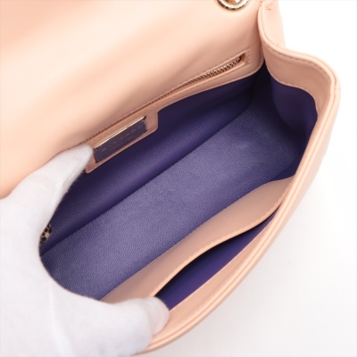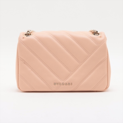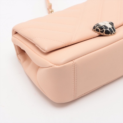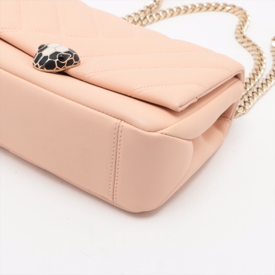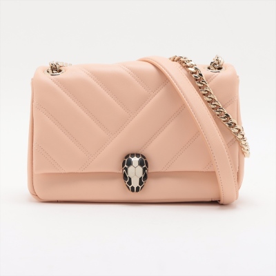 Bvlgari Serpenti Cabochon shoulder bag in pink quilted calfskin. Featuring light gold-tone hardware and a leather and chain shoulder strap. The signature Serpenti snakehead magnetic closure opens to a purple leather interior with a zip pocket and a patch pocket. Approximate dimensions: 21cm(L) x 14.5cm(H) x 7cm(D), with a 49.5cm chain shoulder strap drop. Accompanied by Bvlgari dustbag and bag raincoat. With LegitApp Authentication Certificate. (Pre-owned).