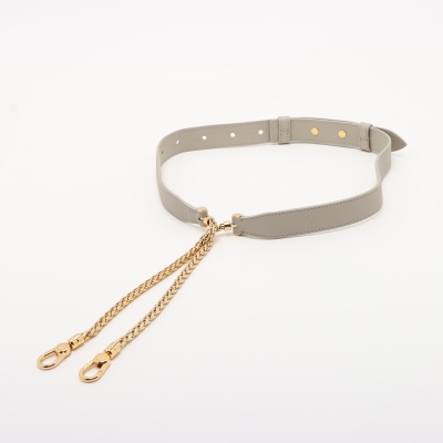 Bvlgari Serpenti Ellipse small shoulder bag in grey beige calfskin leather. Featuring gold-toned hardware, a rear exterior patch pocket, a detachable leather handle, and a detachable leather chain shoulder strap. The signature Serpenti head magnetic button and top zipper opens to a fuchsia pink textile-lined interior with a leather patch pocket. Approximate dimensions: 18cm(W) x 18cm(H) x 4.5cm(D), with a 20cm handle drop and 60cm adjustable strap drop. Accompanied by a Bvlgari raincoat. With LegitApp Authentication Certificate.