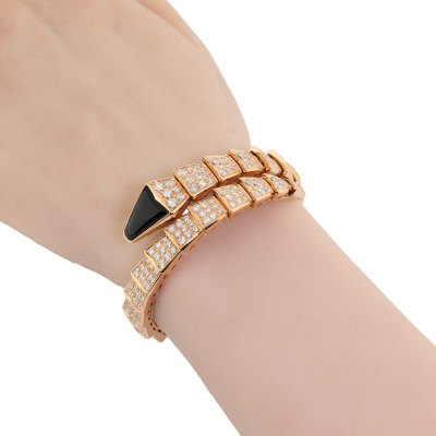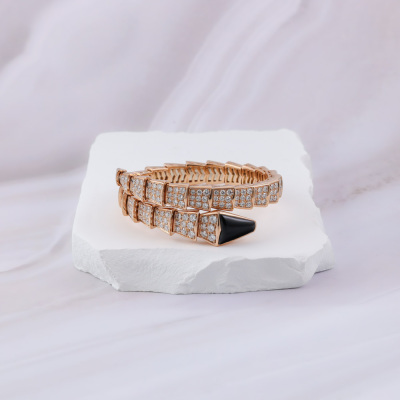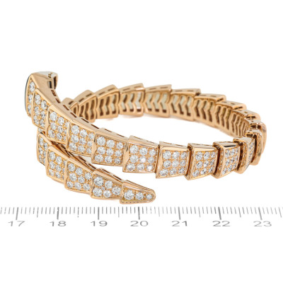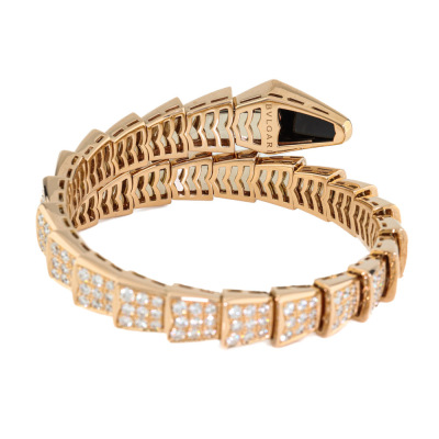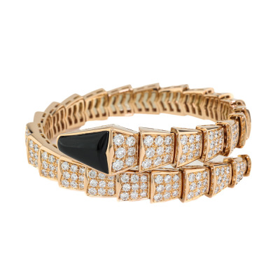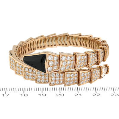 Bvlgari Serpenti Viper Diamond bracelet with round Diamonds totalling 8.00ct (Estimated grading: F VS) and Onyx. 18ct rose gold. Bvlgari stamped size: M, circumference: 17cm. Weight: 64.0g. With Bvlgari box, pouch & Bvlgari Certificate dated: 11/05/2018. (Pre-owned)