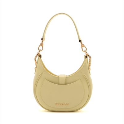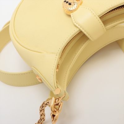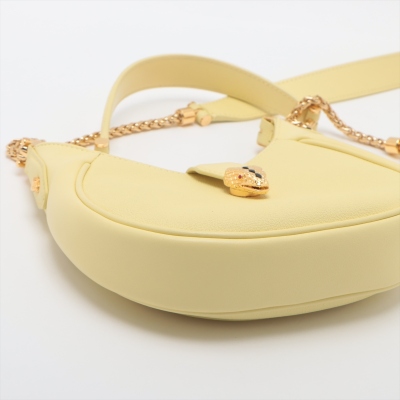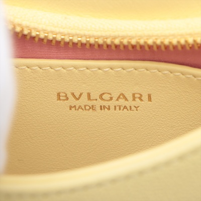Bvlgari small Serpenti Ellipse bag in yellow grainy & smooth calfskin leather. Featuring gold-toned hardware, an exterior patch pocket at back, a detachable handle, and an adjustable shoulder strap. The signature serpent head magnetic button and top zipper closures opens to a pink textile interior with a patch pocket. Approximate dimensions: 18.5cm(L) x 18.5cm(H) x 4cm(D), handle drop 20cm, strap drop 59.5cm. With Australia Luxury Authentication Certificate.