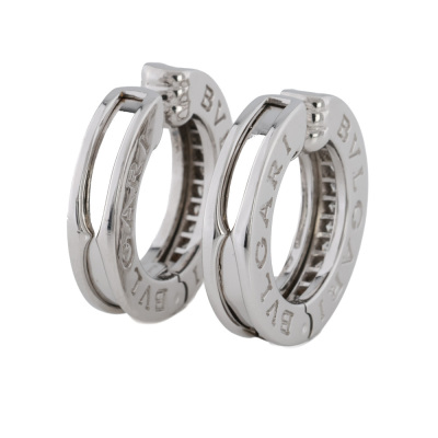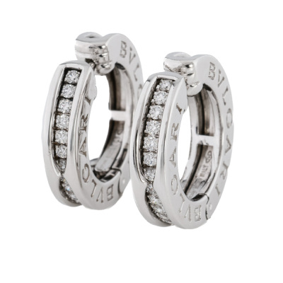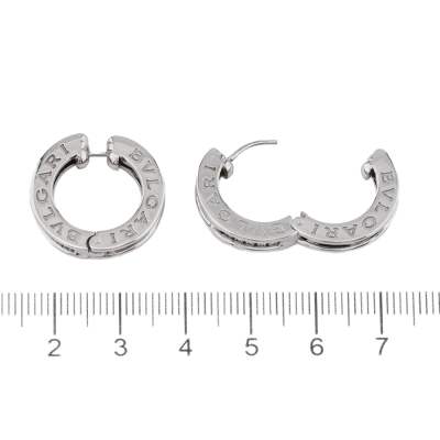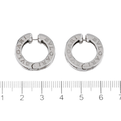 Bvlgari B.zero1 hoop earrings with 26 round Natural Diamonds totalling approximately 0.50ct (Estimated grading: F-G VS). 18ct white gold. Diameter: 2cm. Width: 4.5mm. Made in Italy. Weight: 14.7g. With Certificate #0829650978054177