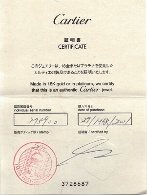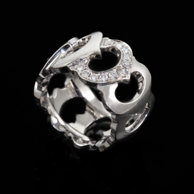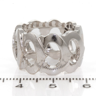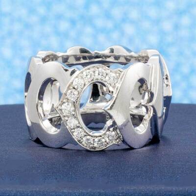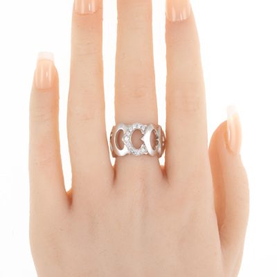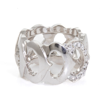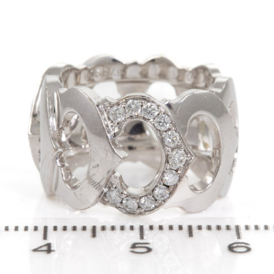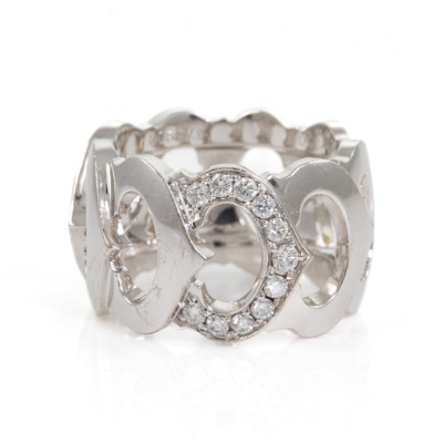 C de Cartier ring with round Natural Diamonds totalling approximately 0.25ct. 18ct white gold. Stamped size 52, L1/2- ring resizing is not recommended. Weight: 13.7g. With Cartier certificate dated 29/03/2001. Note - Ring band with light scratches. (Pre-owned)