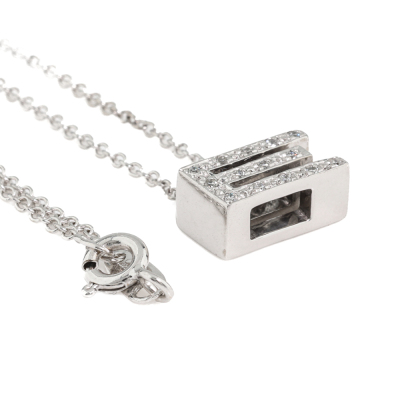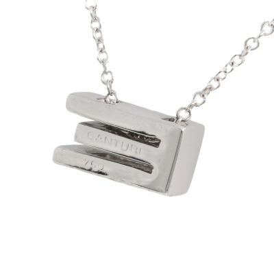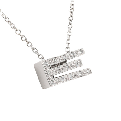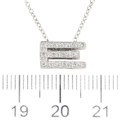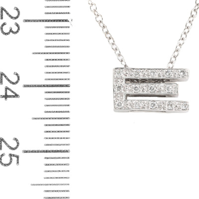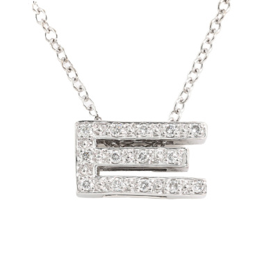 Canturi E Alphabet Initial Necklace with round Natural Diamonds totalling approximately 0.07ct. Pendant size: 11.6mm x 6.3mm. 18ct white gold with Unoaerre 45cm 18ct white gold chain. Weight: 5.6g. (Pre-owned)