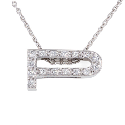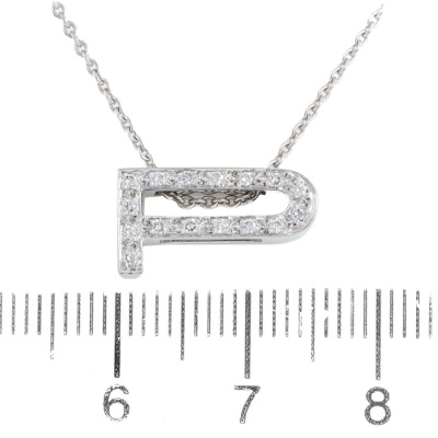 Canturi Initial P Diamond necklace with round Natural Diamonds totalling approximately 0.08ct. 18ct white gold with 45cm 18ct white gold chain. Weight: 7.2g. With Canturi Box. (Pre-owned).