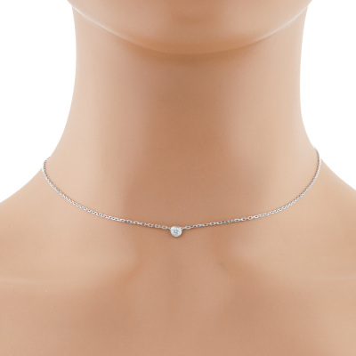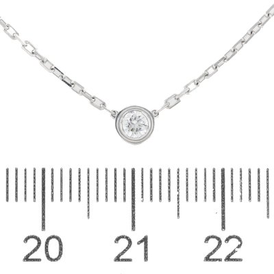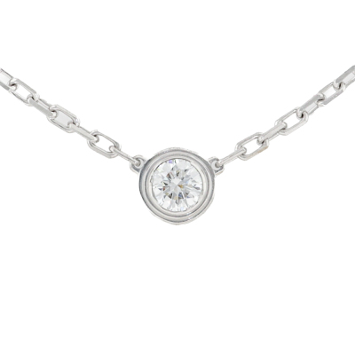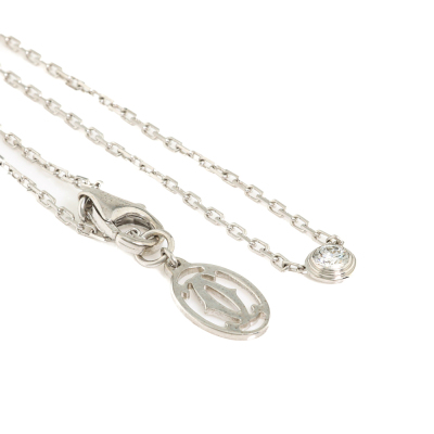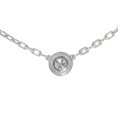 Cartier D Amour Diamond necklace, Small model with a round Natural brilliant cut Diamond of 0.09ct. Motif diameter: 4.5mm. 18ct white gold with Cartier 18ct white gold attached chain. Length: 38cm - 41cm. Weight: 3.0g. (Pre-owned)