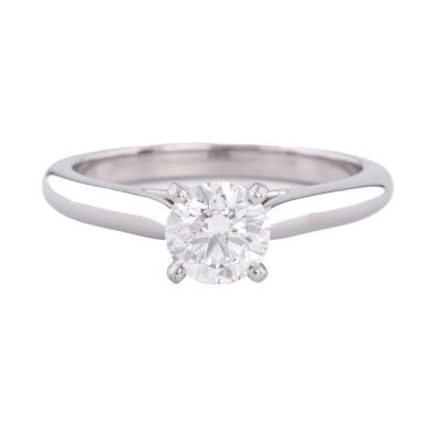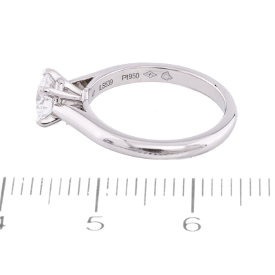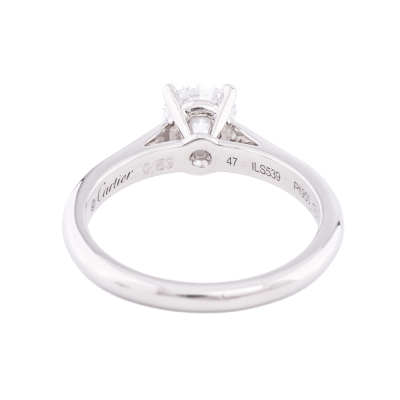 Cartier Diamond solitaire ring with round brilliant cut Diamond of 0.53ct (with GIA report graded D VVS2 #6322125693). Platinum - 950. Cartier stamped size 47, equivalent ring size H. Weight: 3.7g. With Cartier box. (Pre-owned)