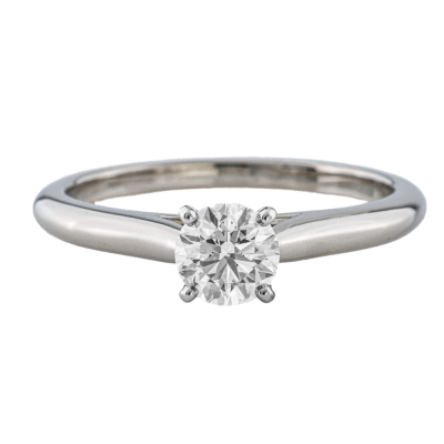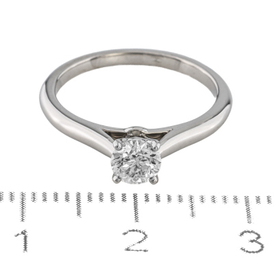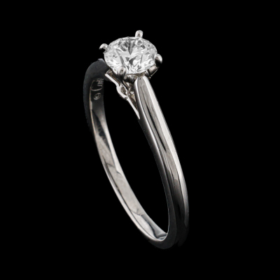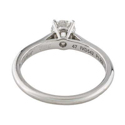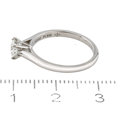 Cartier 1895 solitaire ring with round brilliant cut natural Diamond of 0.36ct (with copy of GIA Report graded as H VS1 #3305294567). Platinum - 950. Cartier stamped size 47, measures as Australian size: H. Band width: 1.5mm - 1.9mm. Weight: 2.8g. With Cartier box. (Pre-owned)