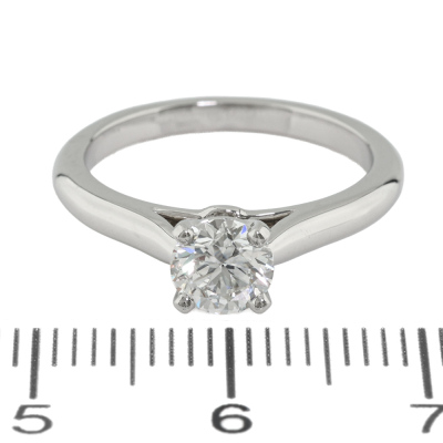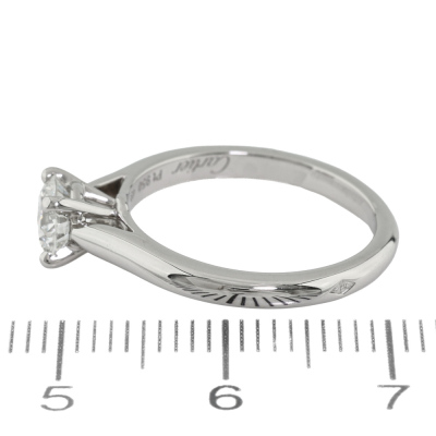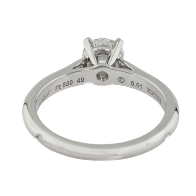 Cartier Diamond solitaire ring with round brilliant cut Natural Diamond of 0.61ct (with GIA report graded as H VVS1 #2146199480). Platinum - 950. Cartier stamped size 49, I 1/2. Weight: 4.1g. With Cartier Certificate dated 05/12/2013 and Cartier box.
