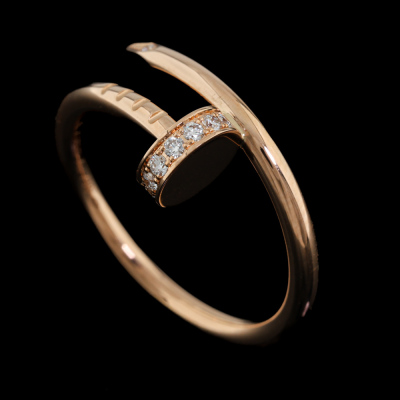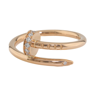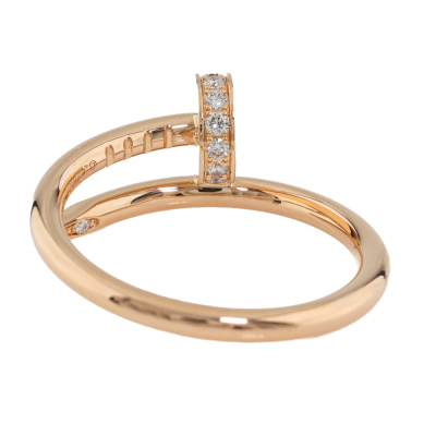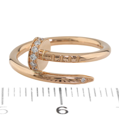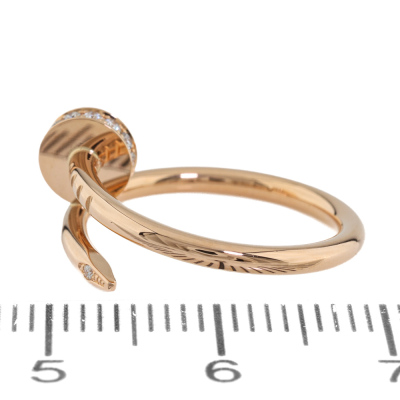 Cartier Juste Un Clou ring, Small Model with round Natural Diamonds totalling 0.08ct. 18ct rose gold. Cartier stamped size 46, measures as Australian size: J1/2 - ring resizing is not recommended. Band width: 1.8mm. Weight: 3.0g. With Cartier box. (Pre-owned)