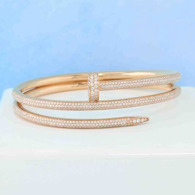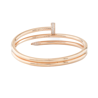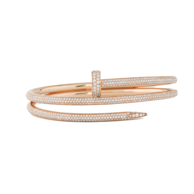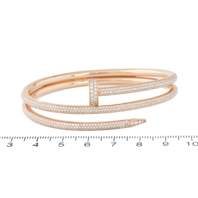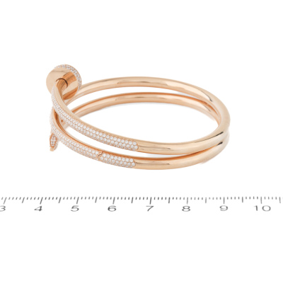 Cartier Juste un Clou, Double bracelet with semi-paved 624 round Natural Diamonds totalling approximately 3.61ct (Estimated grading: F-G VS). 18ct rose gold. Cartier stamped size 17. Width: 7mm. Weight: 56.3g. With Cartier inner, outer box and gift bag. With Cartier Certificate dated: 10/05/2020. (Pre-owned)