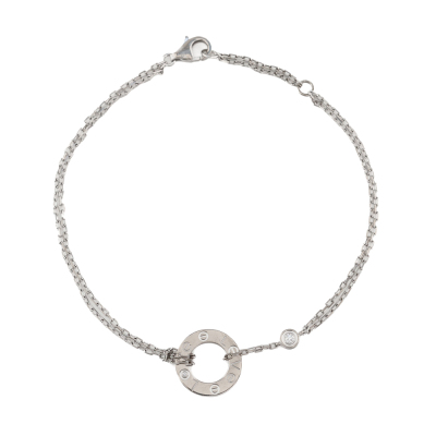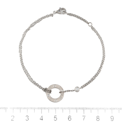 Cartier Love Diamond bracelet with 2 round Diamonds totalling approximately 0.03cts. Motif diameter: 13mm. 18ct white gold. Adjustable length approximately: 17.5 - 19.5cm. Weight: 4.5g. (Pre-owned)