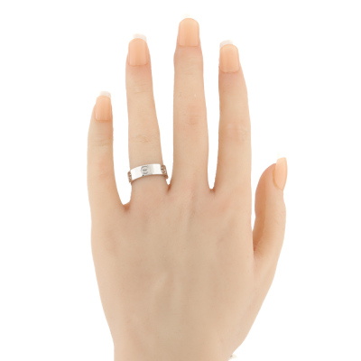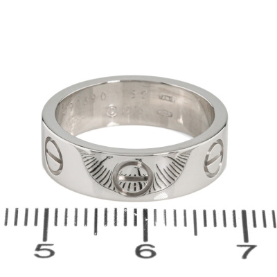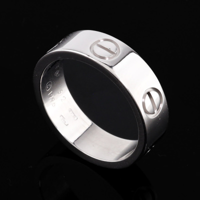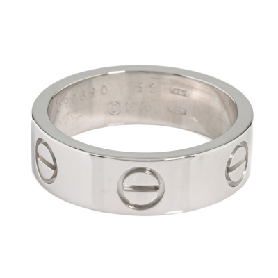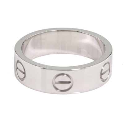 Cartier Love ring, classic model. 18ct white gold. Cartier stamped size 52, actual ring size K 1/2 - ring resizing is not is not recommended. Band width: 5.5mm. Weight: 7.4g. (Pre-owned)
