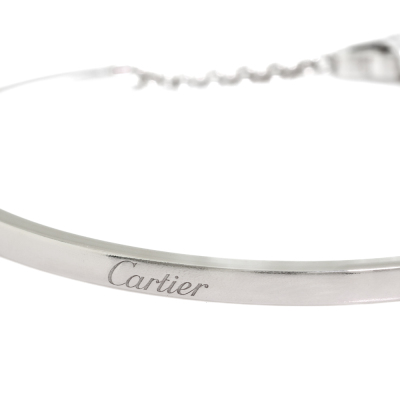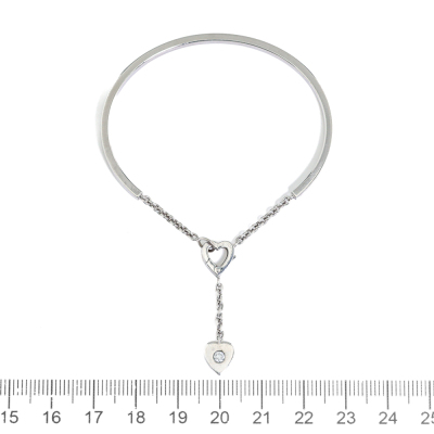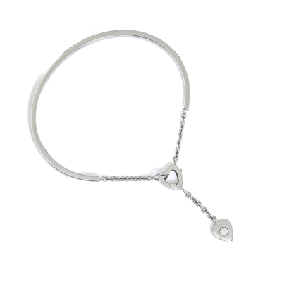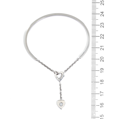 Cartier Mon Amour Heart Torque bangle with a round Natural Diamond of approximately 0.10ct. 18ct white gold. Heart charm size: 7.4mm x 8.5mm. Cartier stamped size 15. Weight: 15.0g. With Certificate #2251689566296577 (Pre-owned)