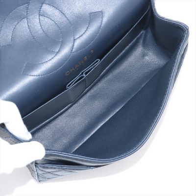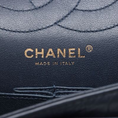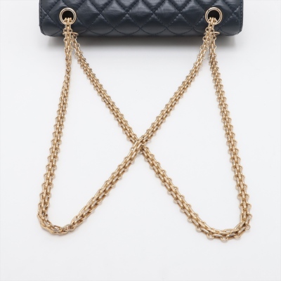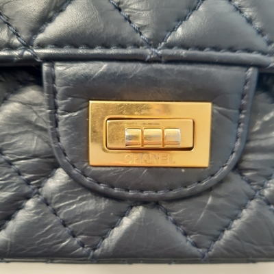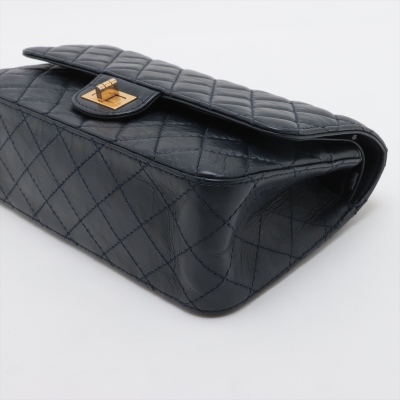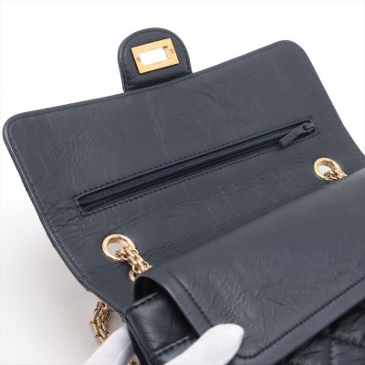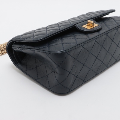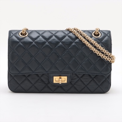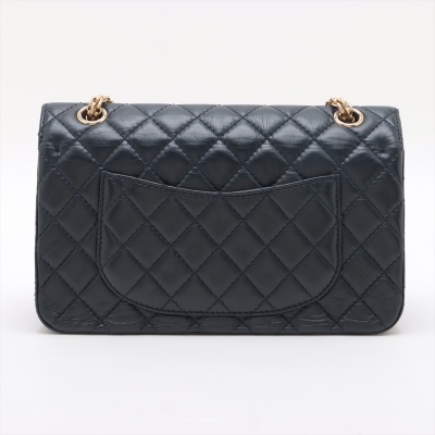 Chanel 2.55 Reissue 225 double flap in navy blue diamond-quilted aged calfskin (#23xxxxxx). Featuring aged gold tone hardware & a rear exterior flat pocket. The Mademoiselle turn-lock on flap opens to an inner flap, a slip pocket and a navy blue leather lining interior with patch pockets. Approximate dimensions: 24.5cm(L) x 15cm(H) x 8cm(D), doubled chain drop 29cm. Accompanied by Chanel card & purchase receipt. With Entrupy Certificate of Authenticity. (Pre-owned)