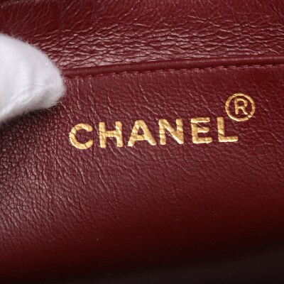 Chanel vintage flap bag in black lambskin with diamond quilted (#2xxxxxx). Featuring gold-tone hardware, a broad looping leather shoulder strap, a flat pocket at back, leather covered CC logo on frontal flap opens to a Burgundy leather lining interior with zipper and patched pockets. Approx dimensions: 25.5cm(L) x 18cm(H) x 8cm(D), 45cm shoulder strap drop. With Entrupy Certificate of Authenticity. (Pre-owned)