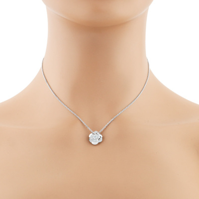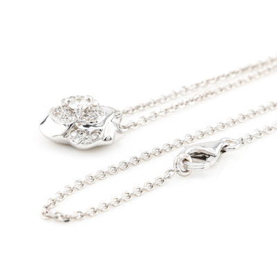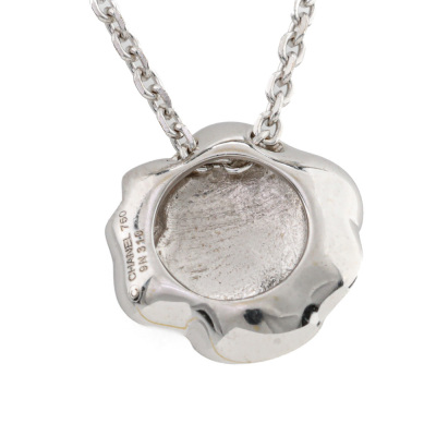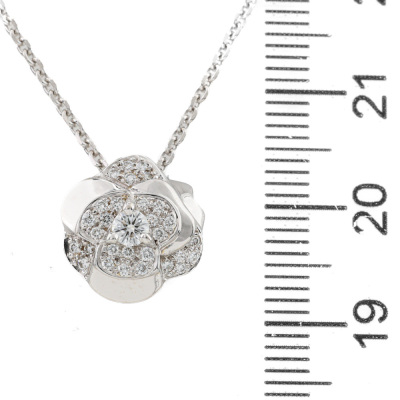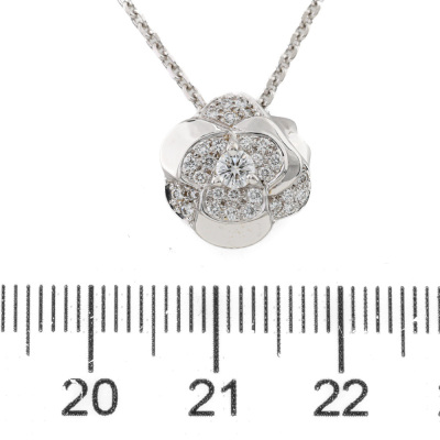 Chanel Camelia necklace with natural round Diamonds totalling approximately 0.39ct (Estimated grading: F-G VS). 18ct white gold with 39cm 18ct white gold chain. Weight: 6.2g. (Pre-owned)