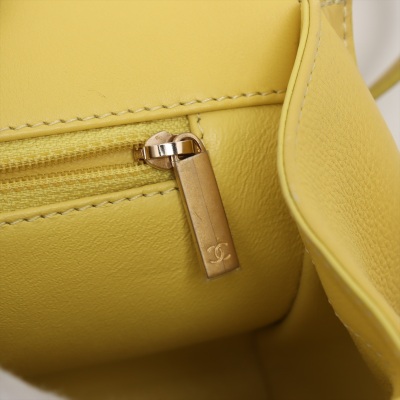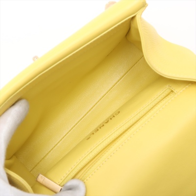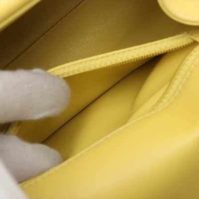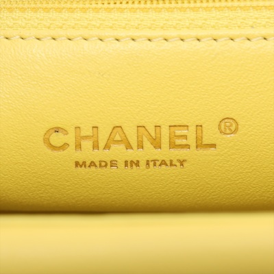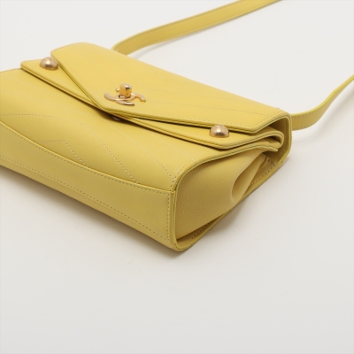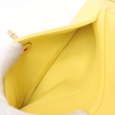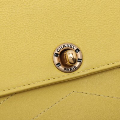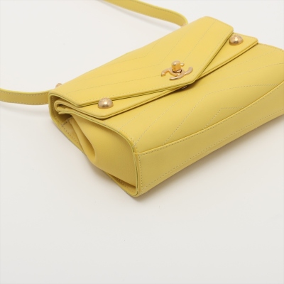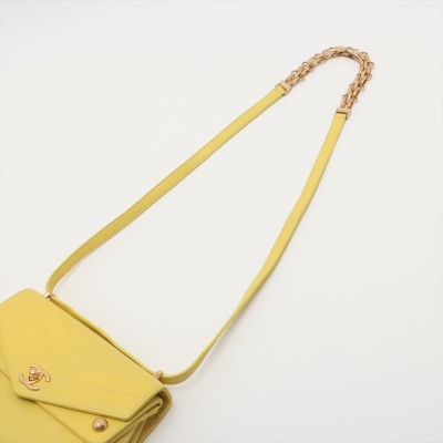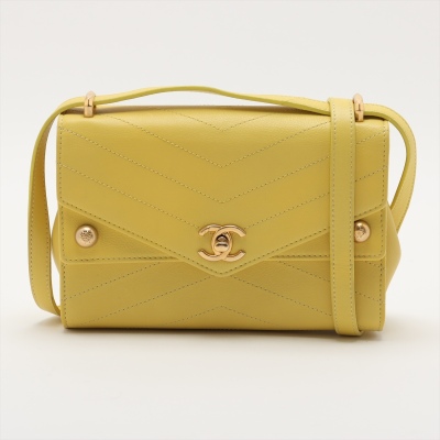 Chanel Envelop flap bag in yellow chevron quilted calfskin leather (#27xxxxxx, circa: mid 2019). Featuring antique gold-toned hardware, studded detailing at front, a leather - maxi reissue chain link sliding shoulder strap. The classic CC turn-lock opens to a inner flap covered slip pocket and a yellow leather interior with a zip pocket. Approximate dimensions: 20cm(L) x 14cm(H) x 6.5cm(D), and 53.5cm single chain shoulder drop. With Entrupy Certificate of Authenticity. (Pre-owned)
