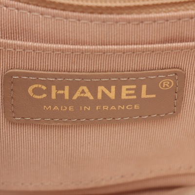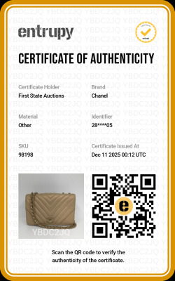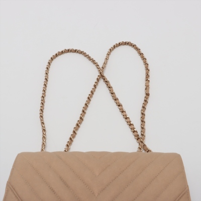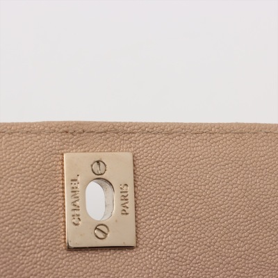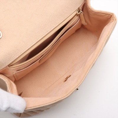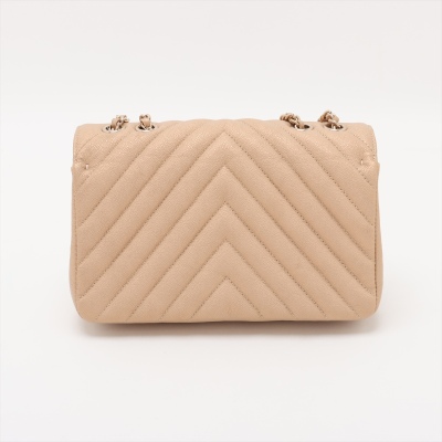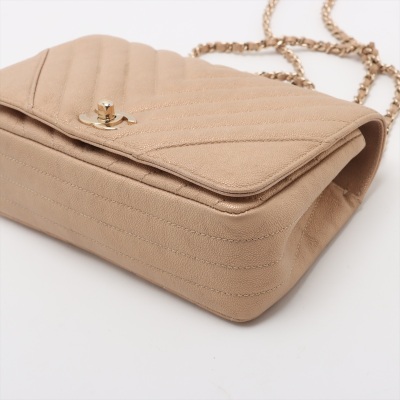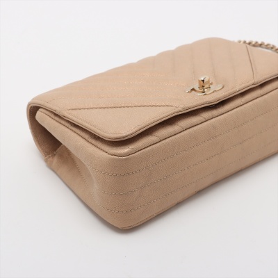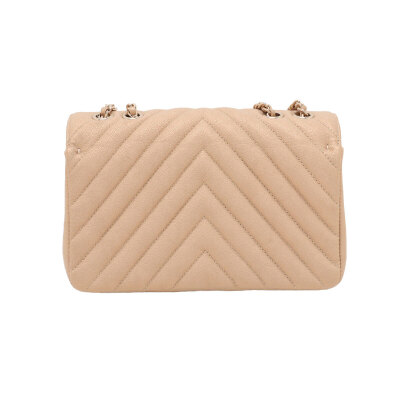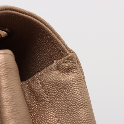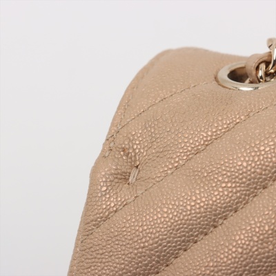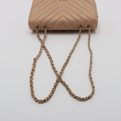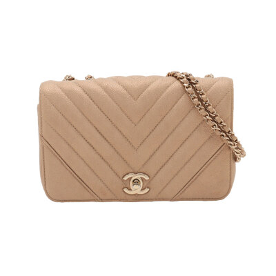 Chanel Statement flap bag in gold iridescent chevron-quilted caviar leather (#28xxxxxx: late2019-2020). Featuring shiny gold-toned hardware and leather-chain woven shoulder straps. The classic CC turn-lock on full flap opens to a tonal textile lining main compartment with zipped and patched pockets. Approximate dimensions: 20cm(L) x 13.5cm(H) x 6.5(D) and 26cm doubled shoulder strap drop. Accompanied by Chanel card. With Entrupy Certificate of Authenticity. (Pre-owned).