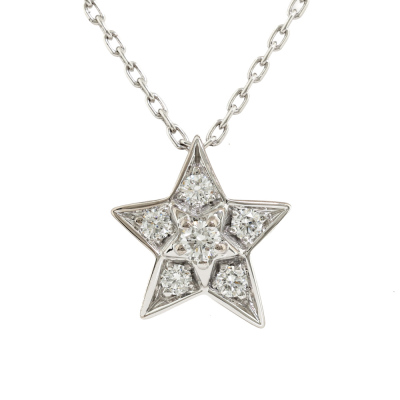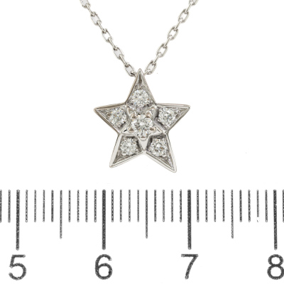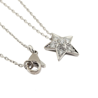 Chanel Comet Diamond necklace with round Natural Diamonds totalling 0.30ct (Estimated grading: F VS). 18ct white gold with 38cm - 41cm Chanel 18ct white gold chain. Weight: 4.0g.
