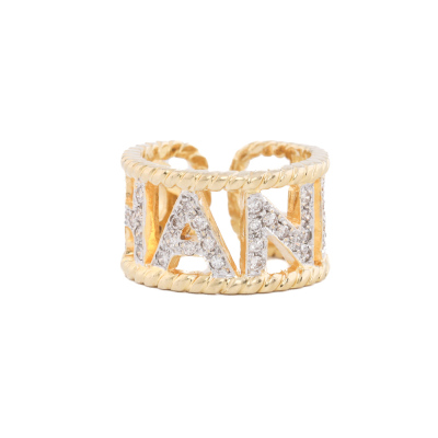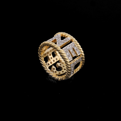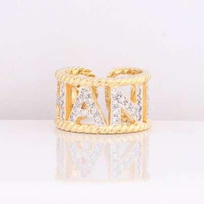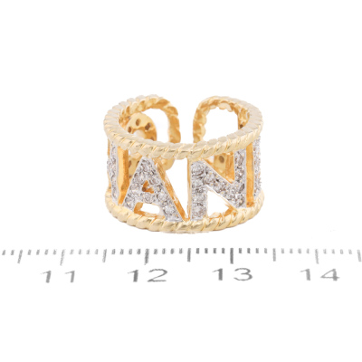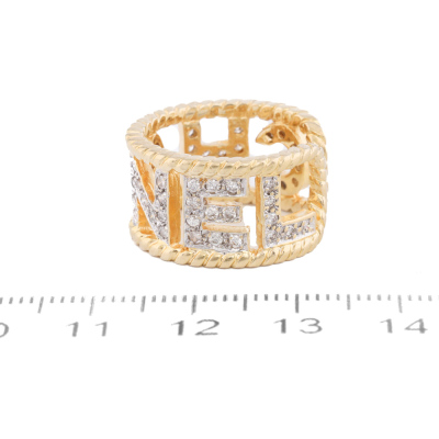 Chanel open ring with round Natural Diamonds totalling 0.65ct (Estimated grading: F-G VS-SI). 18ct yellow gold. Measures as Australian ring size: I3/4 - Ring resizing is not recommended. Band width: 11.3mm. Weight: 9.3g. (Pre-owned)