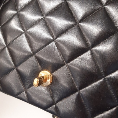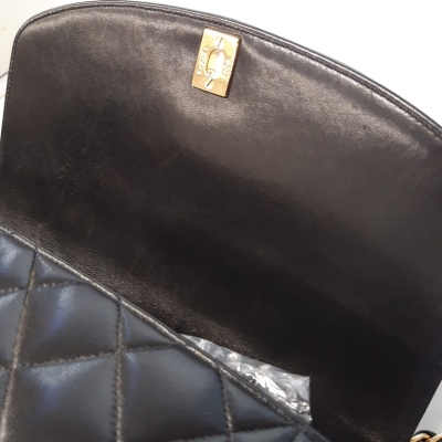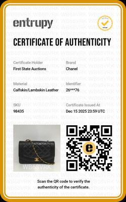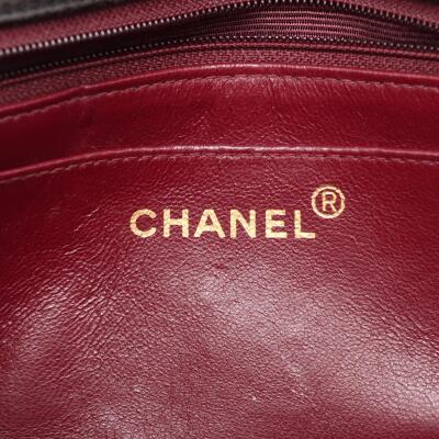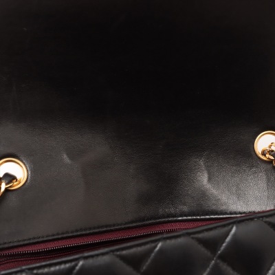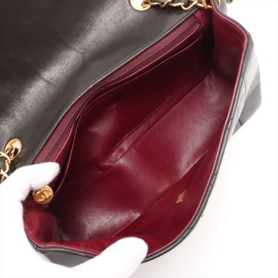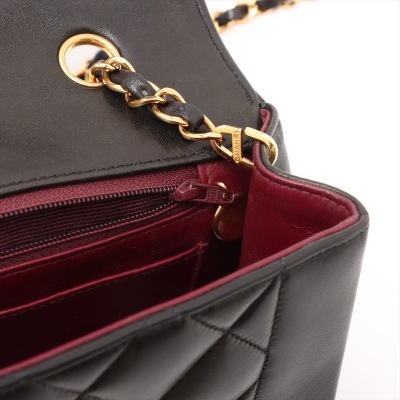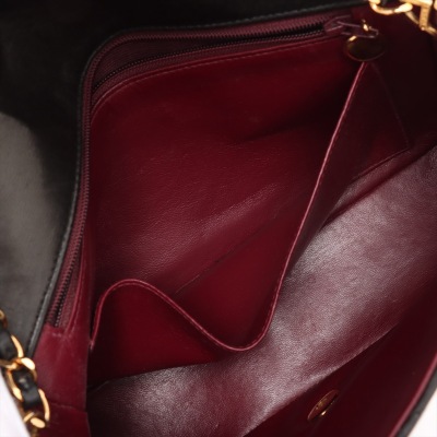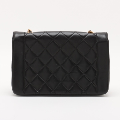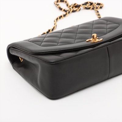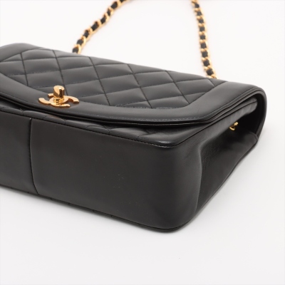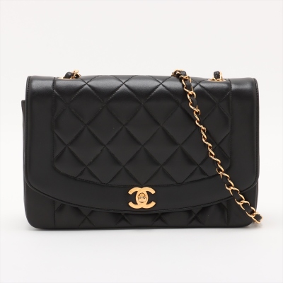 Chanel Diana flap bag in black diamond quilted lambskin leather (#2xxxxxx: Circa 91-94). Featuring gold-toned hardware, smooth leather trims and a single leather-chain woven shoulder strap. The classic CC turn-lock closure opens to a maroon leather interior with a patch pocket and a zip pocket. Approximate dimensions: 25cm(L) x 16.5cm(H) x 7cm(D) and 52cm shoulder strap drop. Accompanied by Chanel box and dust bag. With Entrupy Certificate of Authenticity. (Pre-owned)