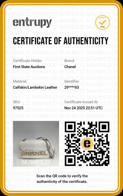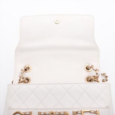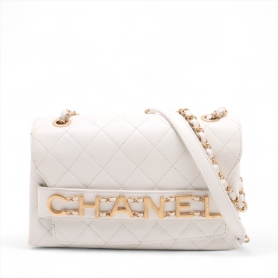 Chanel Enchained flap bag in white diamond-quilted calfskin leather (#29xxxxxx). Featuring aged gold-tone hardware, a chain embellished Chanel logo on at front & sliding leather & chain interwoven shoulder strap. The magnetic button on flap opens to a beige fabric-lined interior with a zip pocket. Approx. dimensions: 24.5cm(W) x 15cm(H) x 7.5cm(D), 29.5cm doubled chain strap drop. Accompanied by Chanel card, dustbag & box. With Entrupy Certificate of Authenticity.(Pre-owned)