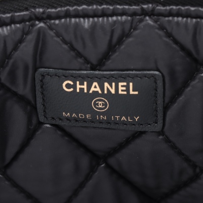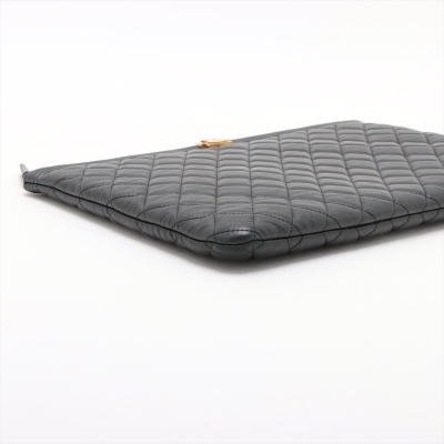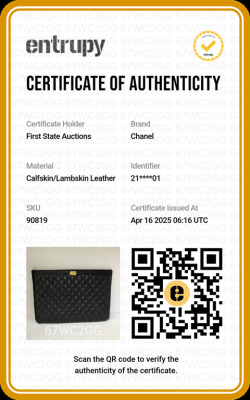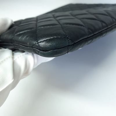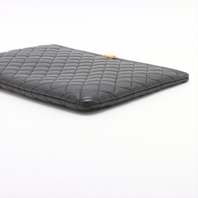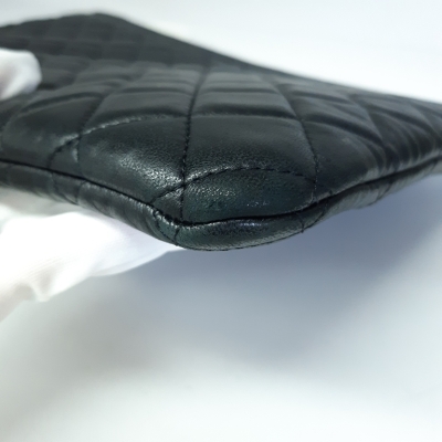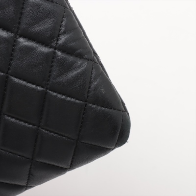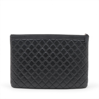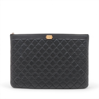 Chanel large Boy clutch in black diamond-quilted lambskin leather (#21xxxxxx). Featuring gold-toned hardware, CC boy press-lock logo detail at front, and top zipper closure. This opens to a black diamond-quilted nylon interior. Approximate dimensions: 34cm(L) x 24cm(H). With Entrupy Certificate of Authenticity. (Pre-owned)