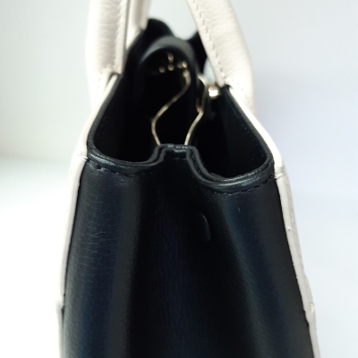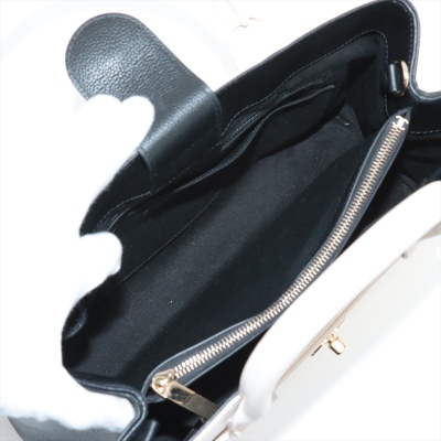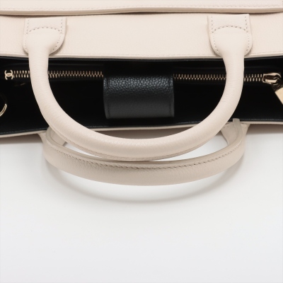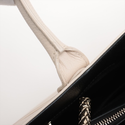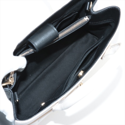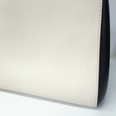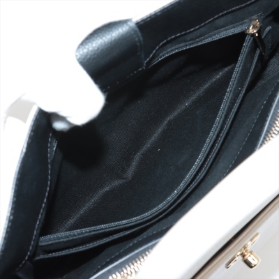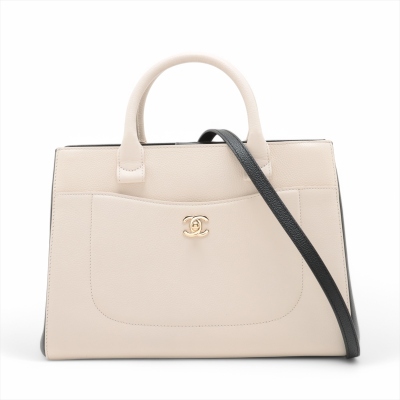 Chanel Neo Executive tote in white and black grained calfskin leather (24xxxxxx). Featuring gold-toned hardware, CC turn-lock exterior front pocket, and magnetic rear pocket. The top opens to black textile interior with 2 compartments with pockets, divided by a zip pocket. Approx. dimensions: 33cm(Base-L) x 24cm(H) x 14cm(D), handle drop 9cm, shoulder strap drop 49cm, detachable. Accompanied by Chanel authenticity card. With Entrupy Certificate of Authenticity. (Pre-owned)