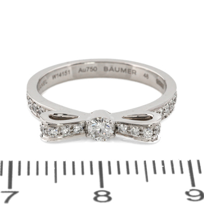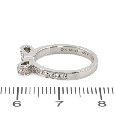 Chanel Ruban ring with round Natural Diamonds totalling 0.26ct. 18ct white gold. Chanel stamped size 48, measures as Australian size: I3/4 - Ring resizing is not recommended. Band width: 2.2mm. Weight: 3.0g. With Chanel box. (Pre-owned)