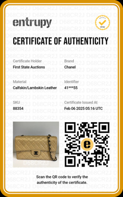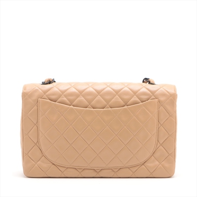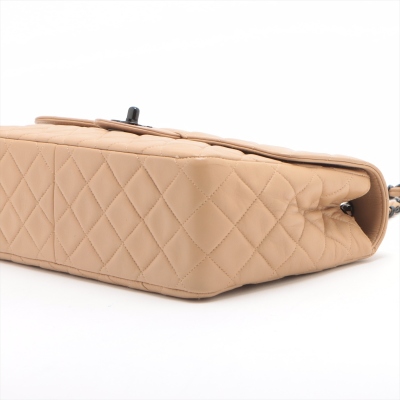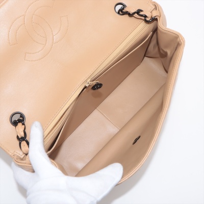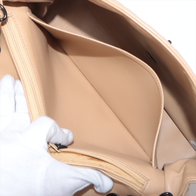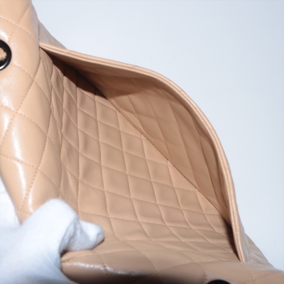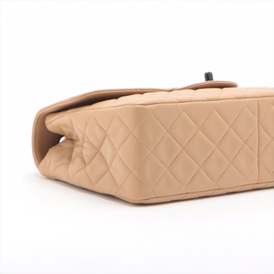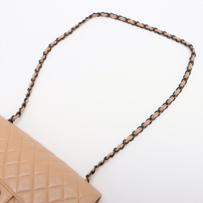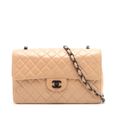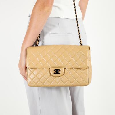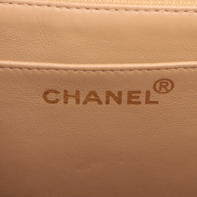 Chanel vintage single flap bag in beige diamond-quilted lambskin leather (#4xxxxxx). Featuring black-toned hardware, exterior rear pocket, single chain-leather threaded shoulder strap. The turn-lock closure on frontal flap open to beige leather interior with patch and zipper pockets. Approximate dimensions: 28cm(L) x 18cm(H) x 8cm(D), strap drop 52cm. Accompanied by Chanel dustbag and certificate card. With Entrupy Certificate of Authenticity. (Pre-owned)