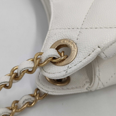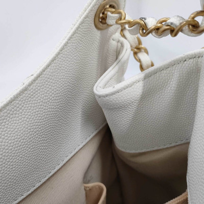 Chanel Wavy CC Hobo Bag White Caviar Skin