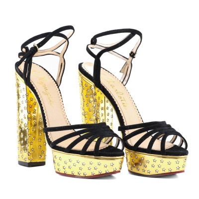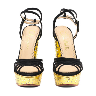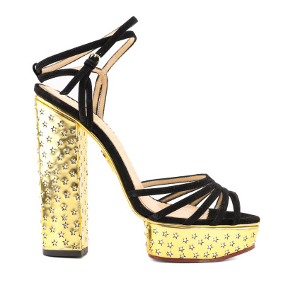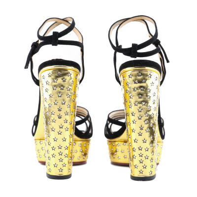 Charlotte Olympia Sandal Platform Suede/Metallic Calf. Size EU40. Colour: Gold/Black. Heel Height: 150mm. Material: Suede/Metallic Calf. With Charlotte Olympia box. With 2 Charlotte Olympia protective bag. (Pre-owned)*