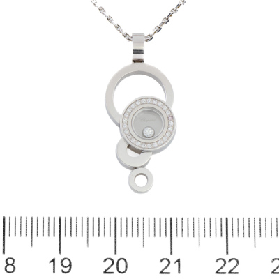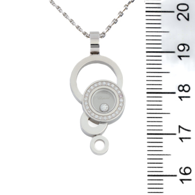 Chopard Happy Bubbles pendant with 26 round Diamonds totalling 0.11ct (including one floating Diamond and one Natural Pink Diamond). 18ct white gold with 42cm Chopard 18ct white gold chain. Weight: 10.5g. (Pre-owned)