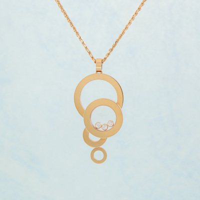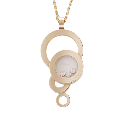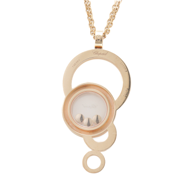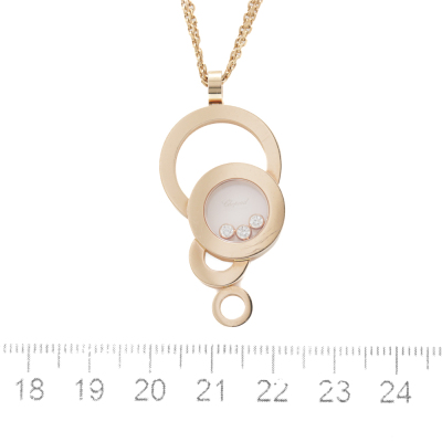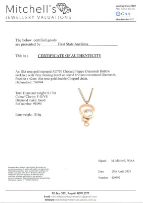 Chopard Happy Diamond Bubble necklace with 3 floating round Natural Diamonds totalling 0.17ct. Chopard 18ct rose gold with 42cm double 18ct rose gold chain. Weight: 18.6g. With Chopard box. With Certificate #420492. (Pre-owned)