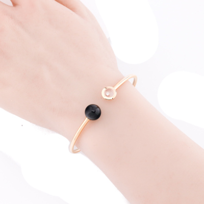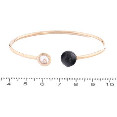 Chopard Happy Diamond Planet bracelet with one floating round Natural Diamond of approximately 0.04ct and sphere Natural Onyx. Onyx diameter: 10.1mm. 18ct rose gold. Internal circumference: 17cm. Made in Germany. Weight: 10.4g. With Chopard inner & outer box. (Pre-owned)