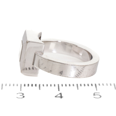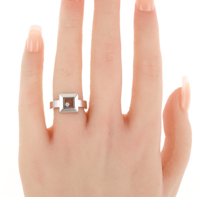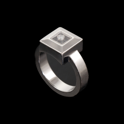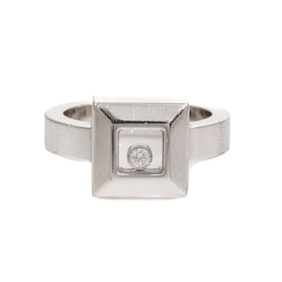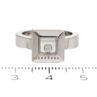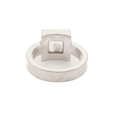 Chopard Happy Diamond Square ring with round Natural Diamond totalling 0.05ct (Estimated grading F-G VS). Square size: 10.1mm x 10.1mm. 18ct white gold. Ring size J½. Band width: 3.9mm. Weight: 11.7g. (Pre-owned)