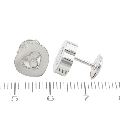 Chopard Happy Diamonds Icons earrings with 2 floating round Natural Diamonds totalling approximately 0.08ct. Motif size: 9.5mm x 10.4mm. 18ct white gold with 18ct white gold secured backs. Weight: 7.8g.