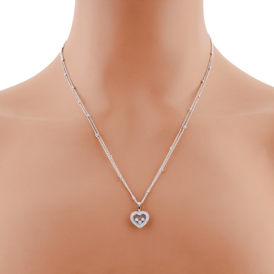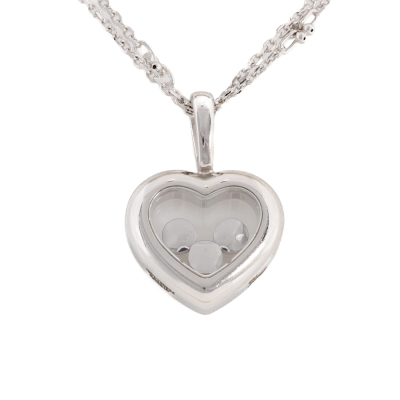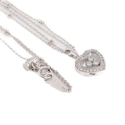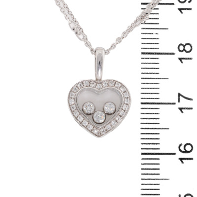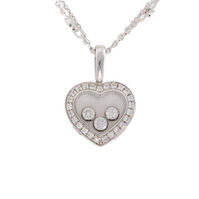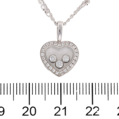 Chopard Happy Diamonds Icons Heart pendant with round Natural Diamonds (including 3 floating Diamonds) totalling approximately 0.27ct (Estimated grading: G-H SI). Motif size: 12mm x 16mm. 18ct white gold. With adjustable 50cm unbranded 18ct white gold chain. Weight: 7.6g. (Pre-owned)