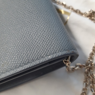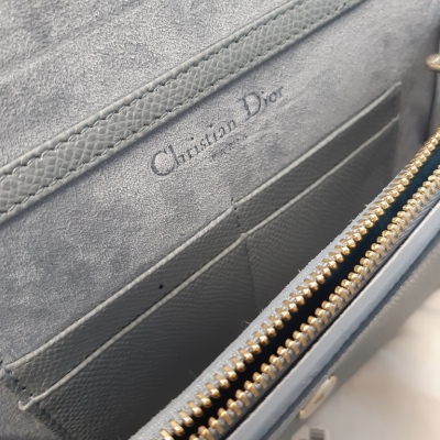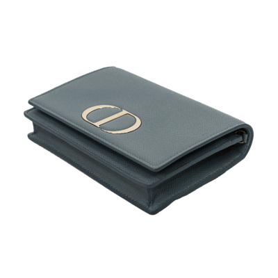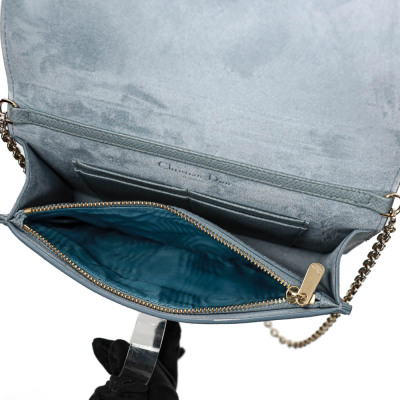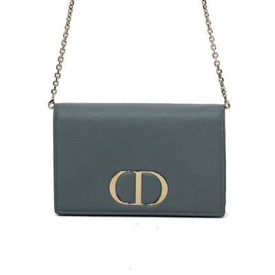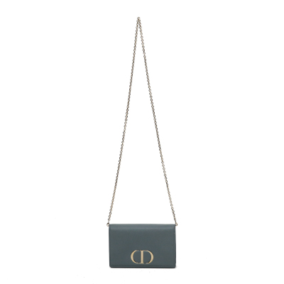 Christian Dior 30 Montaigne 2-in-1 pouch in blue grained calfskin leather (year2022). Featuring silver-toned hardware, embossed '30 MONTAIGNE' signature & exterior pocket at back. The pin-in closure on flap opens to a slip pocket, a zip pocket & blue suede interior with 4 card slots. Approx. dimensions: 19cm(L) x 12.5cm(H) x 4cm(D), 55cm detachable chain strap drop and 95cm detachable & adjustable belt length. Accompanied by Dior dust bag. With Entrupy Certificate of Authenticity. (Pre-owned).