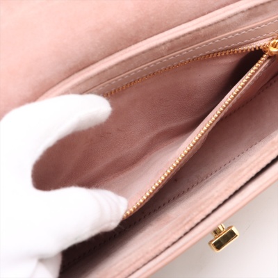 Christian Dior 30 Montaigne Avenue bag in dusty pink calfskin leather (circa: 2023). Featuring gold-toned hardware, an exterior back pocket with embossed 30 Montaigne signature & an adjustable shoulder strap with CD logo chain links. The turn-lock closure on flap opens to a pink suede interior with zip & slip pockets. Approx. dimensions: 23cm(L) x 13cm(H) x 4.5cm(D), & 50.5cm strap drop, adjustable. Accompanied by CD card, receipt (dated 11/03/2023) & booklet. With Entrupy Certificate of Authenticity.