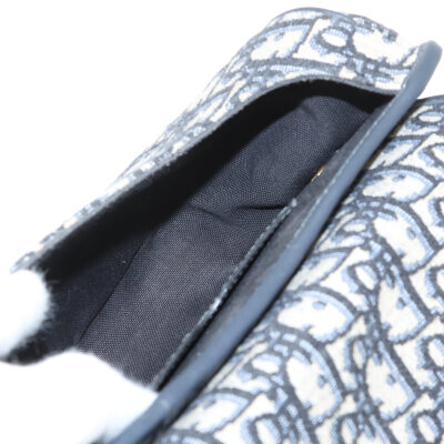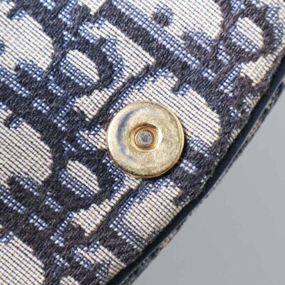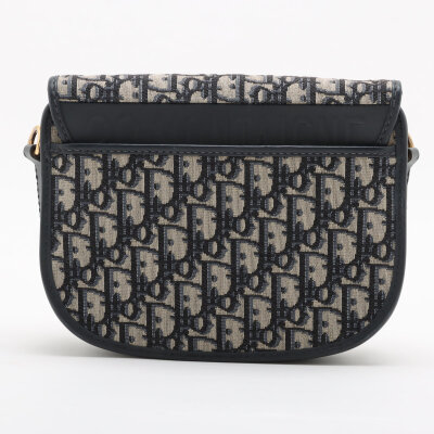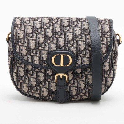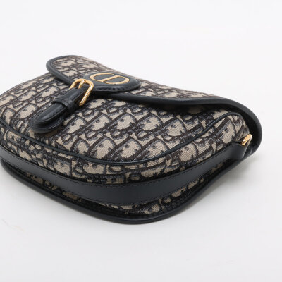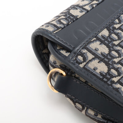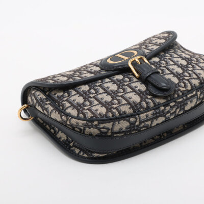 Christian Dior medium Bobby bag in navy blue Dior oblique jacquard canvas (circa: 2020). Featuring navy blue leather trim, gold-toned hardware, a detachable leather strap, embossed '30 Montaigne' signature above the rear exterior pocket, and a magnetic closure at the front. This opens to a black fabric interior with a patch pocket. Approximate dimensions: 22cm(W) x 16cm(H) x 6.5cm(D), with a 52cm adjustable strap drop. With Entrupy Certificate of Authenticity.