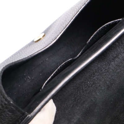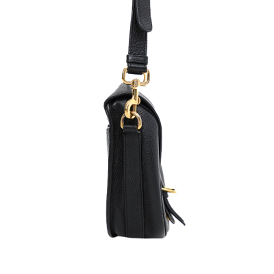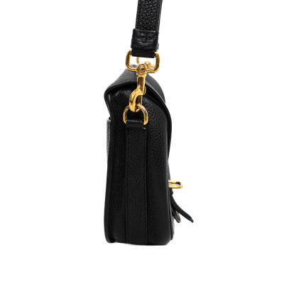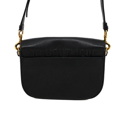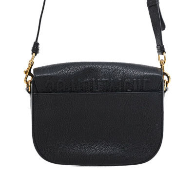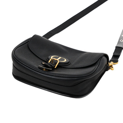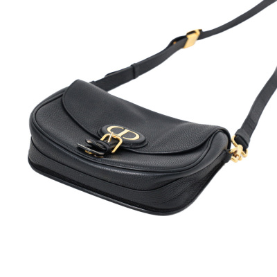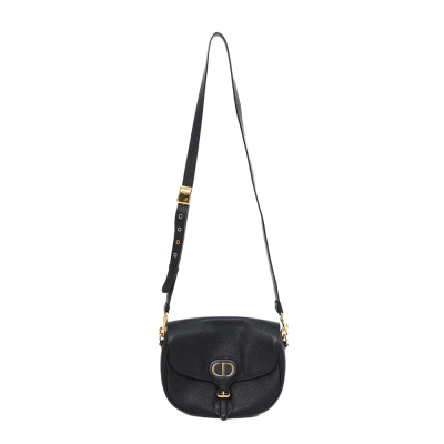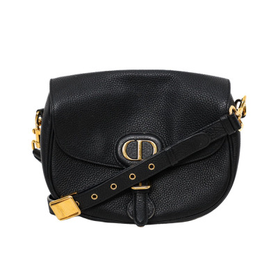 Christian Dior medium Bobby bag in black grained calfskin leather. Featuring gold-toned hardware, CD logo buckle, a detachable shoulder strap, embossed 30 Montaigne signature on the back, and an exterior back pocket. The magnetic closure opens to a black suede lining with a patch pocket. Approximate dimensions: 22cm(W) x 17cm(H) x 6.5cm(D), with a 53cm adjustable strap drop. With Entrupy Certificate of Authenticity.