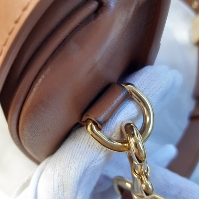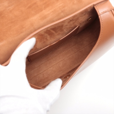 Christian Dior medium Bobby shoulder bag in gold smooth calfskin leather. Featuring gold-toned hardware, decorative CD buckle, embossed 30 Montaigne signature on back, and exterior back pocket. The magnetic closure opens to a brown suede interior with a card slot. Approximate dimensions: 22cm(L) x 17cm(H) x 6cm(D), adjustable & detachable shoulder strap drop 50cm. Accompanied by Dior dustbag. With Entrupy Certificate of Authenticity. (Pre-owned)