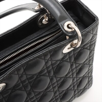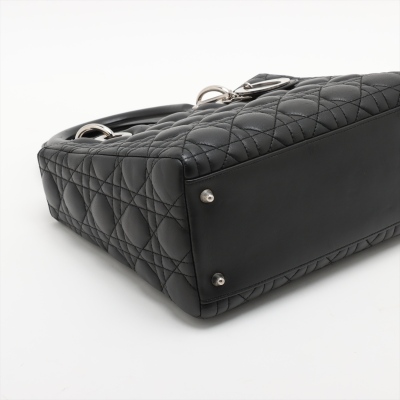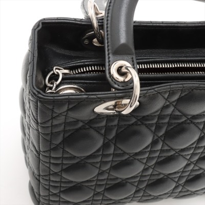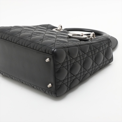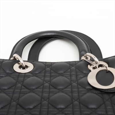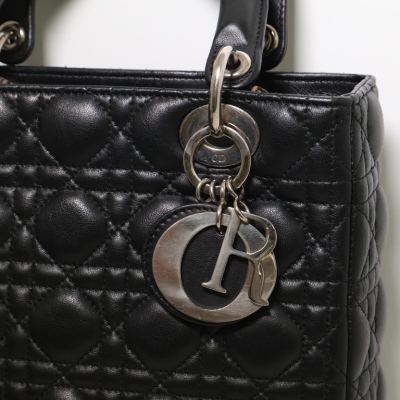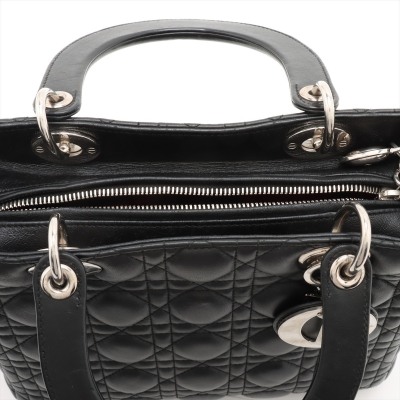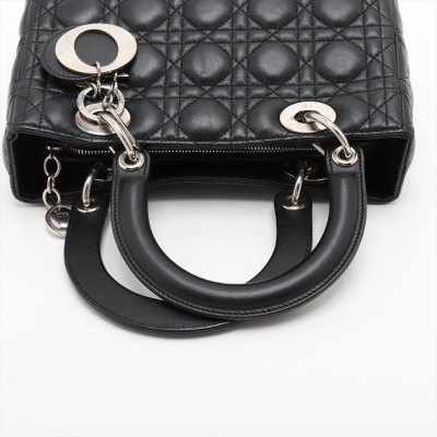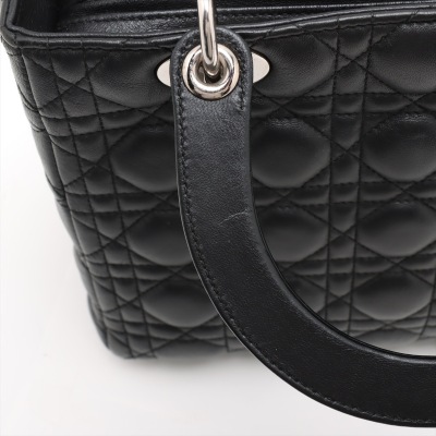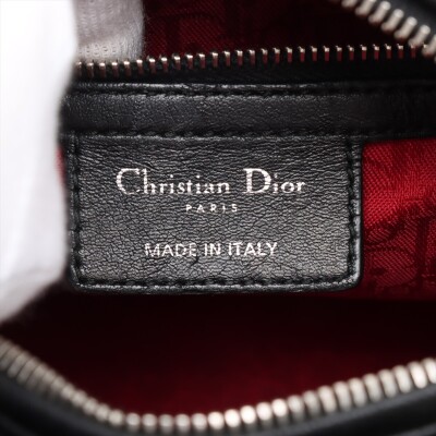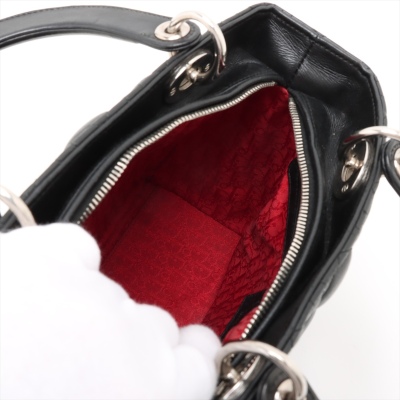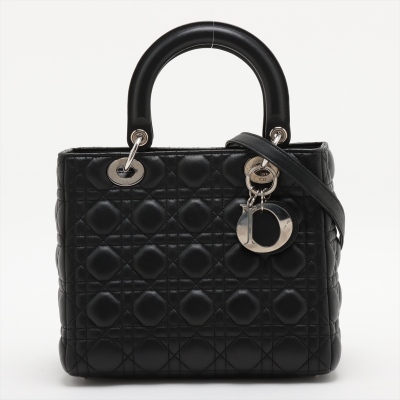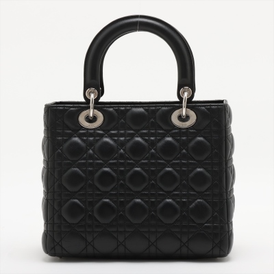 Christian Dior medium Lady Dior in black Cannage quilted leather (Circa: 2011). Featuring silver-toned hardware, 'Dior' letter charms, a zip closure and detachable strap. The signature oval CD zip opens to a red Dior oblique fabric lining interior with a zippered pocket. Approximate dimensions: 24cm(W) x 20cm(H) x 12cm(D), 9cm handle drop and 38cm detachable strap drop. Accompanied by a Dior dustbag. With Entrupy Certificate of Authenticity.