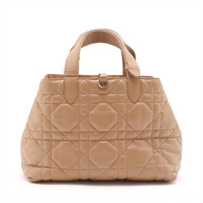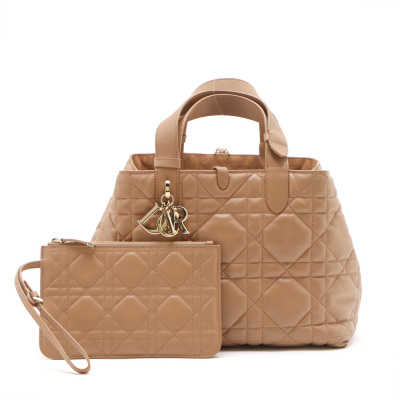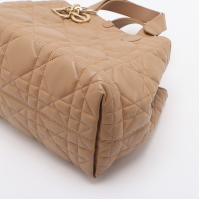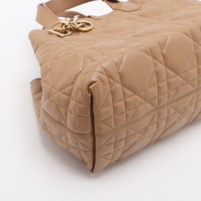 Christian Dior medium Toujours bag in cannage quilted beige smooth calfskin. Featuring light gold-toned hardware, 'DIOR' charms, adjustable leather handles, and a removable interior pouch. The double closures of lace-through strap and CD lock clasp open to a tonal suede lining interior with leather bottom. Approx dimensions: 29cm(L) x 20.5cm(H) x 15.5cm(D), handle drop: 10-23cm. Accompanied by Dior dustbag & box. With Entrupy Certificate of Authenticity. (Pre-owned)