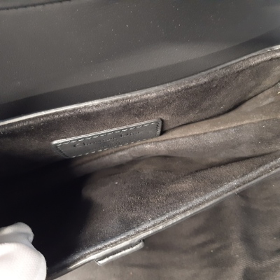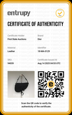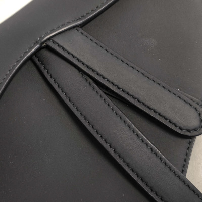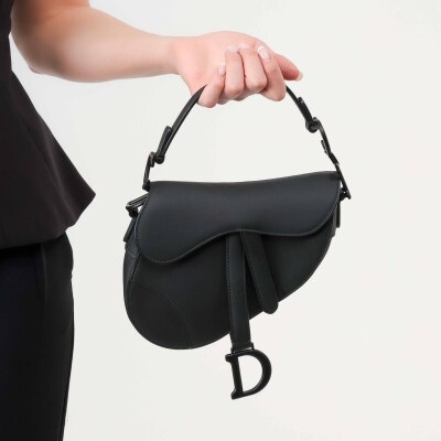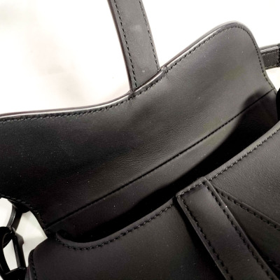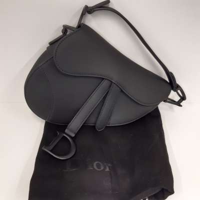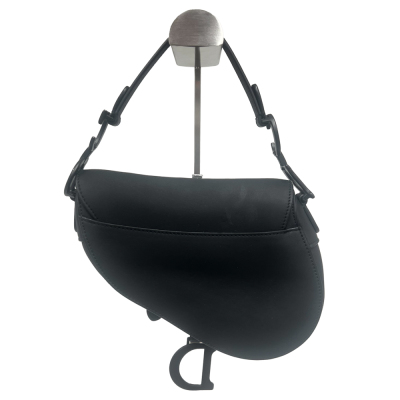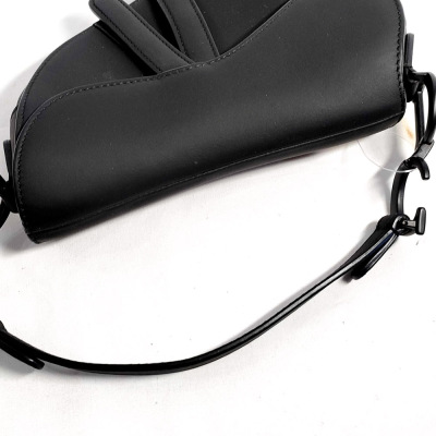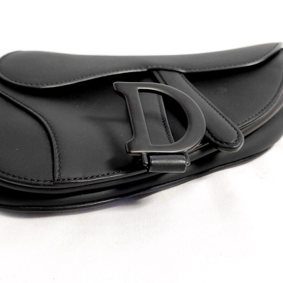 Christian Dior mini Saddle 'Ultra Matte Black' bag in calfskin leather. Featuring an exterior pocket at back, black-toned hardware, CD signature on the strap, flap with magnetic closure on front. This opens to black suede lined interior. Approximate dimensions: 19cm(Top-L) x 15cm(H) x 6cm(D), 12cm handle drop. Accompanied by Dior dustbag. With Entrupy Certificate of Authenticity. (Pre-owned)