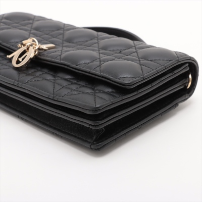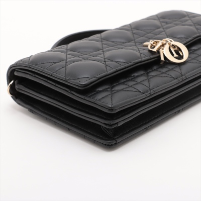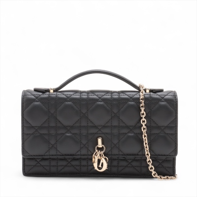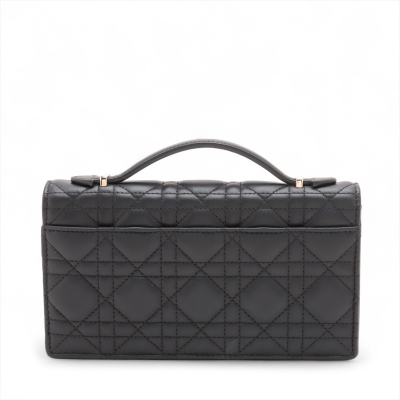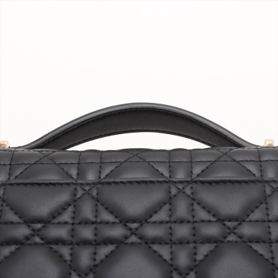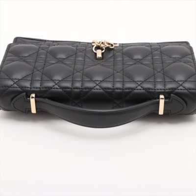 Christian Dior mini My Dior top handle bag in black Cannage-quilted lambskin. Featuring light gold-toned hardware, rear exterior patch pocket, 'DIOR' charms at front flap. The magnetic closure opens to a black leather interior with two compartments and card slots. Approx dimensions: 21cm(L) x 12cm(H) x 3cm(D), handle drop 3cm, chain shoulder strap with pearl details drop 54cm. Accompanied by Dior dustbag and box. With Entrupy Certificate of Authenticity. (Pre-owned)